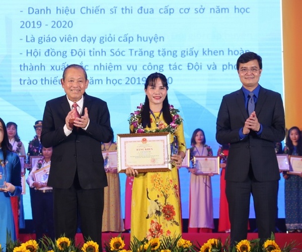 Web.ĐTN: Phó Thủ tướng thường trực Chính phủ Trương Hòa Bình nhắn nhủ các nhà giáo trẻ: "Mỗi thầy, cô giáo là một tấm gương đạo đức, tận tụy, tự học và sáng tạo. Hãy luôn dành tình yêu thương, truyền ngọn lửa khát khao tri thức, khoa học, tư duy sáng tạo cho các thế hệ học trò".