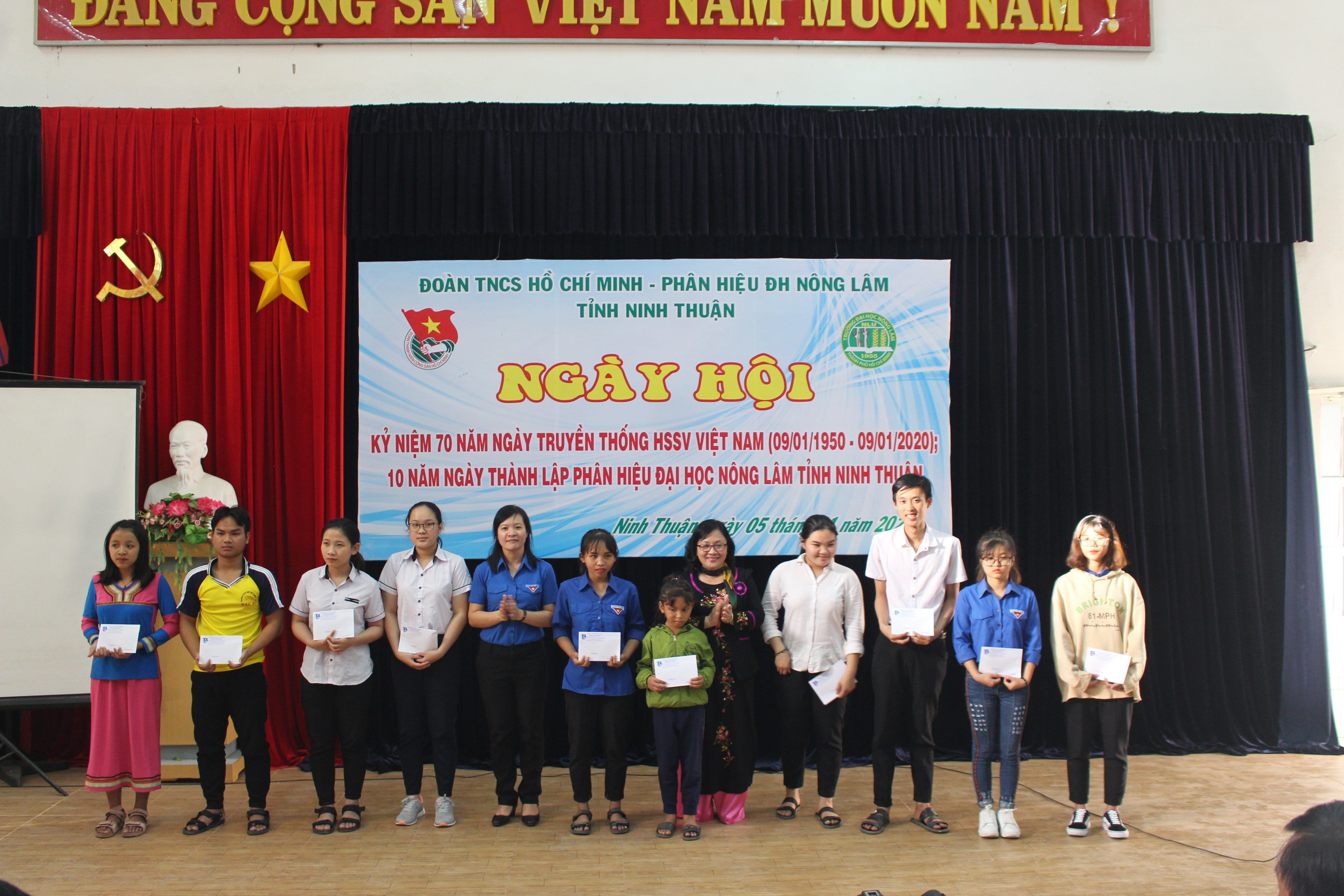 Web.ĐTN: Tại Ngày hội kỷ niệm 70 năm Ngày truyền thống HSSV Việt Nam, BTV Tỉnh đoàn Ninh Thuận đã trao học bổng thắp sáng ước mơ cho học sinh, sinh viên vượt khó học tốt.
