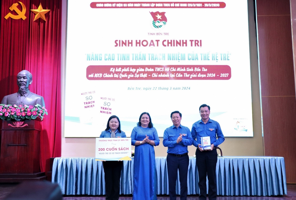 ĐTN: Sáng 22/3, Ban Thường vụ Tỉnh đoàn Bến Tre tổ chức chương trình sinh hoạt chính trị cấp tỉnh với chủ đề “Nâng cao tinh thần trách nhiệm của thế hệ trẻ” và ký phối hợp giữa Đoàn TNCS Hồ Chí Minh tỉnh Bến Tre với NXB Chính trị Quốc gia Sự thật chi nhánh Cần Thơ giai đoạn 2024 - 2027.