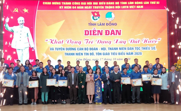Web.ĐTN: Chiều 17/10, Tỉnh đoàn - Hội LHTN Việt Nam tỉnh Lâm Đồng tổ chức chương trình Diễn đàn “Khát vọng trẻ dựng xây đất nước” và tuyên dương 90 gương cán bộ Đoàn – Hội, thanh niên dân tộc thiểu số, tín đồ tôn giáo tiêu biểu năm 2020.