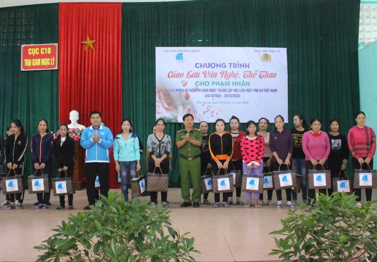 Web.ĐTN: Chiều 19/10, tại phân trại số I, Trại giam Ngọc Lý (Cục C10, Bộ Công an), Hội Liên hiệp Thanh niên tỉnh phối hợp với Trại giam Ngọc Lý tổ chức Chương trình giao lưu văn nghệ, thể thao cho phạm nhân, nhân dịp kỷ niệm 90 năm Ngày thành lập Hội Liên hiệp Phụ nữ Việt Nam (20/10/1930 - 20/10/2020).