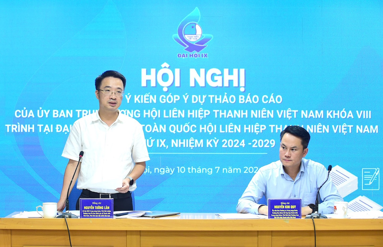 ĐTN: Chiều 10.7, Trung ương Hội Liên hiệp Thanh niên (LHTN) Việt Nam tổ chức Hội nghị lấy ý kiến góp ý dự thảo Báo cáo của Uỷ Ban Trung ương Hội LHTN Việt Nam khóa VIII trình tại Đại hội đại biểu toàn quốc Hội LHTN Việt Nam lần thứ IX, nhiệm kỳ 2024 - 2029.