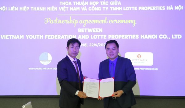 ĐTN: Ngày 22/4, tại trụ sở Công ty TNHH Lotte Properties Hà Nội, Trung ương Hội Liên hiệp thanh niên Việt Nam và Công ty TNHH Lotte Properties Hà Nội đã kí kết thỏa thuận hợp tác nhằm xây dựng 05 ngôi nhà hạnh phúc tại 5 tỉnh Hòa Bình, Sơn La, Lào Cai, Lai Châu, Yên Bái trong khuôn khổ Hành trình “Tôi yêu Tổ quốc tôi” hướng về Điện Biên Phủ.