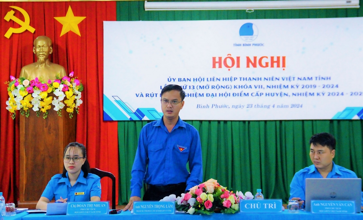ĐTN: Sáng 23/4, Hội LHTN Việt Nam tỉnh Bình Phước đã tổ chức Hội nghị Ủy ban Hội LHTN Việt Nam tỉnh lần thứ 13 (mở rộng) khóa VII, nhiệm kỳ 2019 - 2024 và rút kinh nghiệm Đại hội điểm cấp huyện, nhiệm kỳ 2024 – 2029.