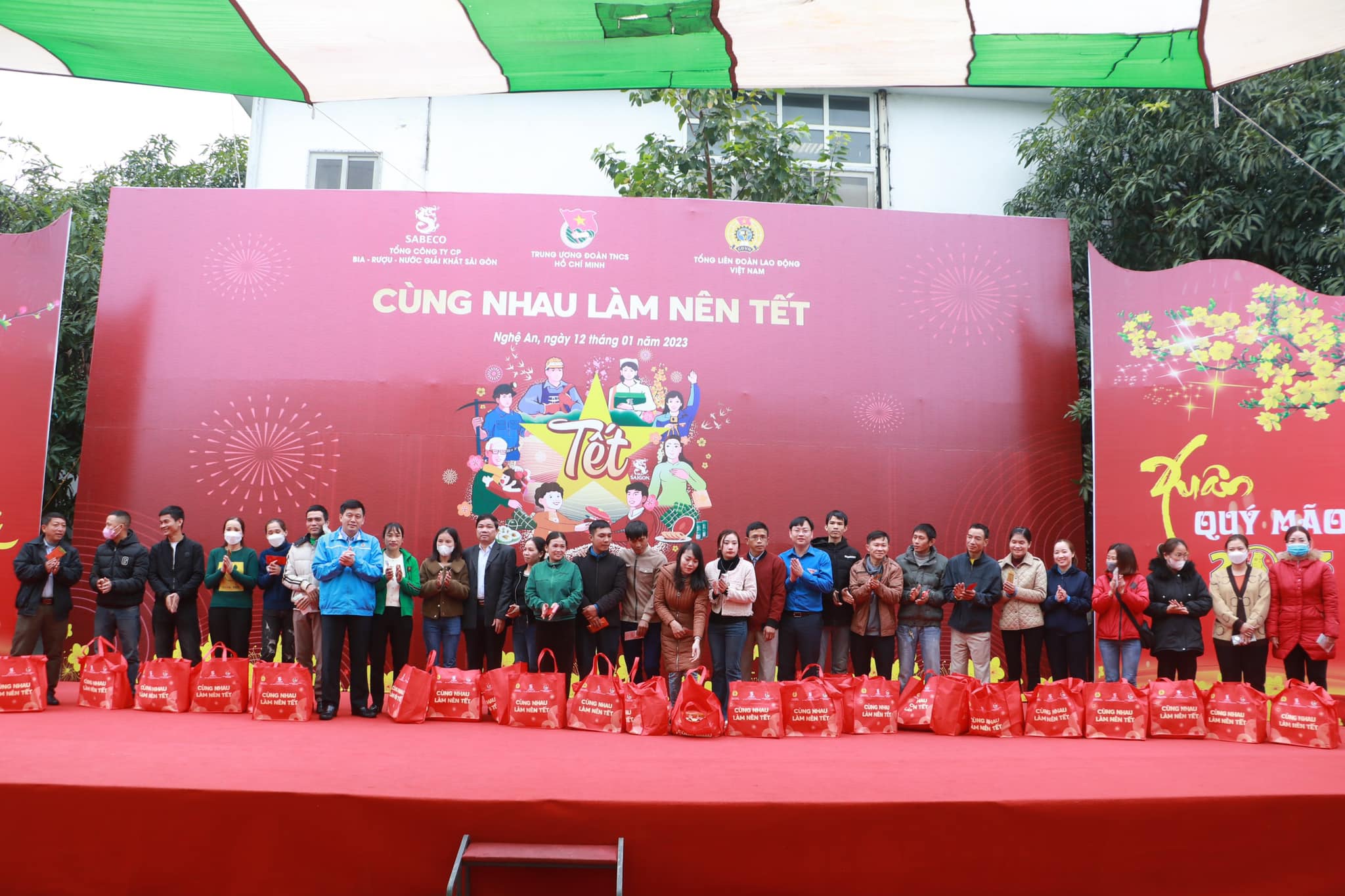 ĐTN: Nhằm đồng hành, hỗ trợ thanh niên công nhân, người lao động đón Tết Quý Mão 2023, ngày 12/01/2023, Trung ương Đoàn, Tổng Liên đoàn lao động Việt Nam, Tỉnh đoàn Nghệ An cùng các đơn vị đồng hành tổ chức chương trình “Cùng nhau làm nên Tết” tại Công ty Cổ phần May Minh Anh - Kim Liên (Khu công nghiệp Bắc Vinh), Nghệ An.