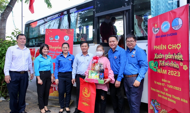 ĐTN: Sáng 15/01, BTV Tỉnh Đoàn, Trung tâm Hoạt động thanh niên tỉnh Bình Dương phối hợp cùng Công ty TNHH TAISHO Việt Nam tổ chức Lễ tiễn các chuyến xe “Năng lượng Tết 2023” đưa thanh niên công nhân và sinh viên có hoàn cảnh khó khăn không có điều kiện về quê đón Tết.