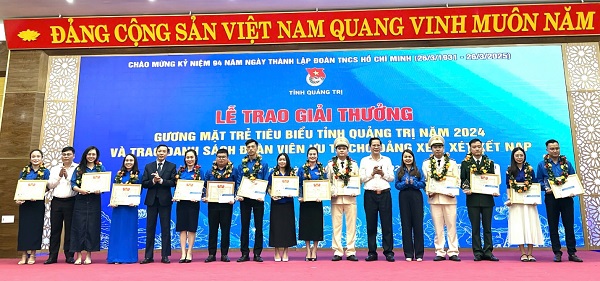 ĐTN: Hòa chung trong không khí thi đua sôi nổi của tuổi trẻ toàn tỉnh hưởng ứng Tháng Thanh niên 2025, chào mừng kỷ niệm 94 năm Ngày thành lập Đoàn TNCS Hồ Chí Minh, ngày 25/3, Ban Thường vụ Tỉnh đoàn tổ chức Lễ trao Giải thưởng “Gương mặt trẻ tiêu biểu tỉnh Quảng Trị” năm 2024 và trao danh sách đoàn viên ưu tú cho Đảng xem xét, kết nạp.
