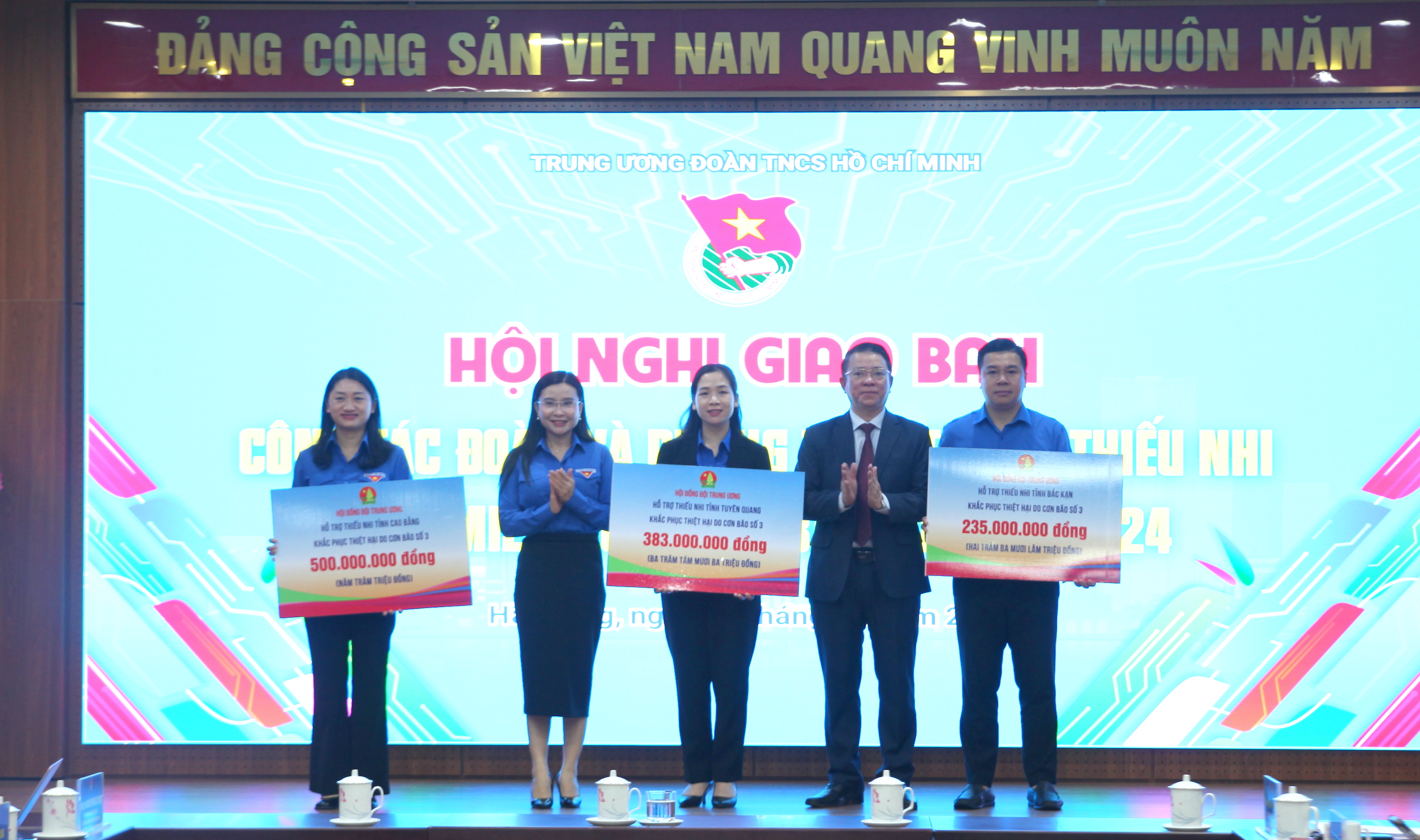 Hơn 1 tỷ đồng được trao cho các Tỉnh đoàn khu vực Đông Bắc Bộ bị ảnh hưởng bởi cơn bão số 3