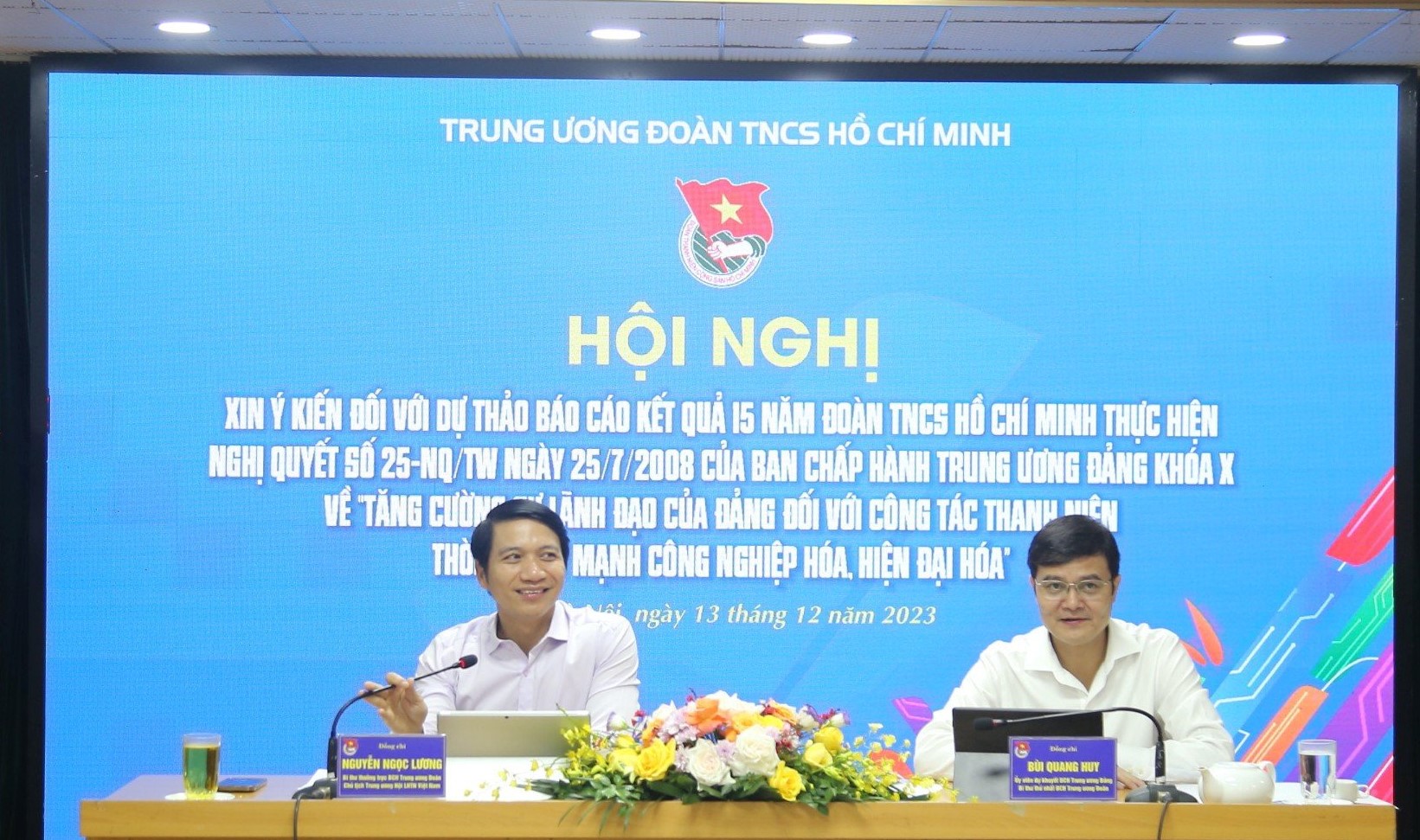 ĐTN: Ngày 13/12, T.Ư Đoàn tổ chức Hội nghị góp ý Báo cáo kết quả 15 năm Đoàn TNCS Hồ Chí Minh thực hiện Nghị quyết 25-NQ/TW ngày 25/7/2008 của Ban Chấp hành Trung ương Đảng khóa X về “Tăng cường sự lãnh đạo của Đảng đối với công tác thanh niên thời kỳ đẩy mạnh công nghiệp hóa, hiện đại hóa”.