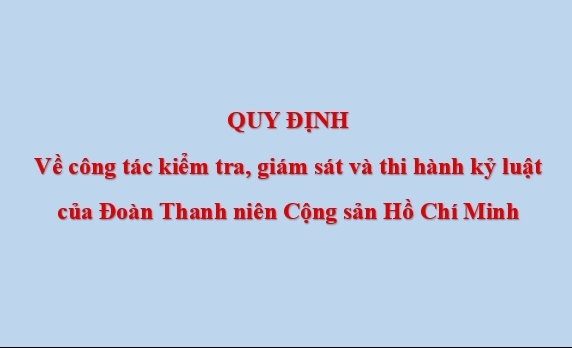 ĐTN: Ngày 6/12/2023, Ban Thường vụ Trung ương Đoàn ban hành quy định về công tác kiểm tra, giám sát và thi hành kỷ luật của Đoàn TNCS Hồ Chí Minh đối với tổ chức đoàn, cán bộ đoàn và đoàn viên trong việc thi hành Điều lệ Đoàn, chấp hành quy định, chủ trương, nghị quyết của tổ chức Đoàn.