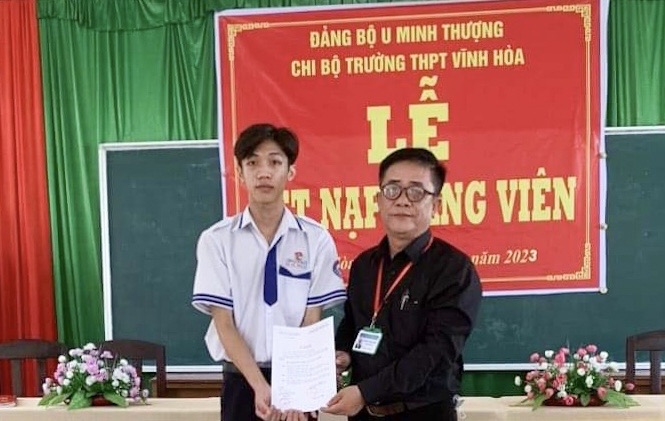 ĐTN: Ngày 10/8, Chi bộ trường THPT Vĩnh Hoà long trọng tổ chức Lễ kết nạp Đảng viên cho đồng chí Phan Tiến Anh và Lê Chí Tình là học sinh, đoàn viên ưu tú của nhà trường.