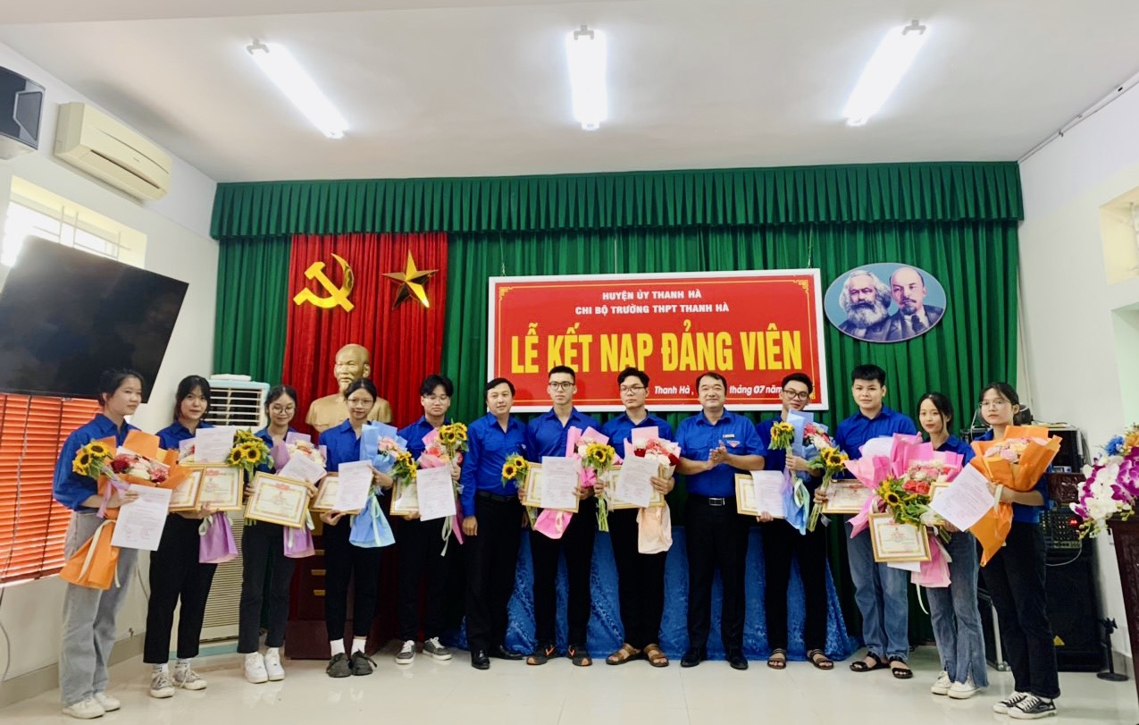 ĐTN: Chiều 10/7, tại trường THPT Thanh Hà, huyện Thanh Hà, Chi bộ trường THPT Thanh Hà tổ chức lễ kết nạp Đảng viên cho 11 quần chúng ưu tú là học sinh có thành tích xuất sắc của trường.
