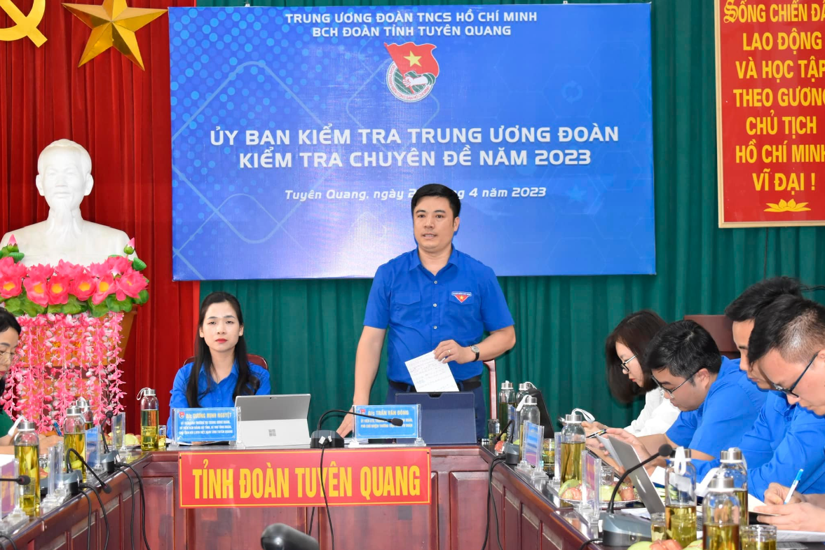 ĐTN: Ngày 25/4, Đoàn kiểm tra của UBKT T.Ư Đoàn do đồng chí Trần Văn Đông, Ủy viên BTV, Trưởng Ban Kiểm tra T.Ư Đoàn, Phó Chủ nhiệm Thường trực UBKT T.Ư Đoàn làm trưởng đoàn đã làm việc với Ban Thường vụ Tỉnh đoàn Tuyên Quang về chuyên đề công tác giới thiệu quy hoạch, quy hoạch cán bộ Đoàn giai đoạn 2022 – 2027.