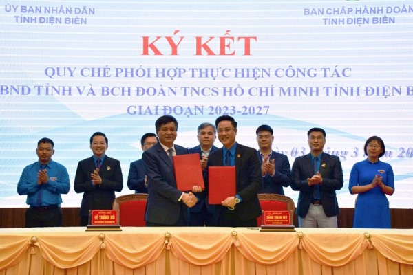 ĐTN: Ngày 3/3, tại trụ sở UBND tỉnh, UBND tỉnh và Ban Chấp hành Tỉnh đoàn TNCS Hồ Chí Minh tỉnh Điện Biên tổ chức Ký kết Quy chế phối hợp thực hiện công tác của UBND tỉnh và BCH Đoàn TNCS Hồ Chí Minh tỉnh Điện Biên, giai đoạn 2023 - 2027.