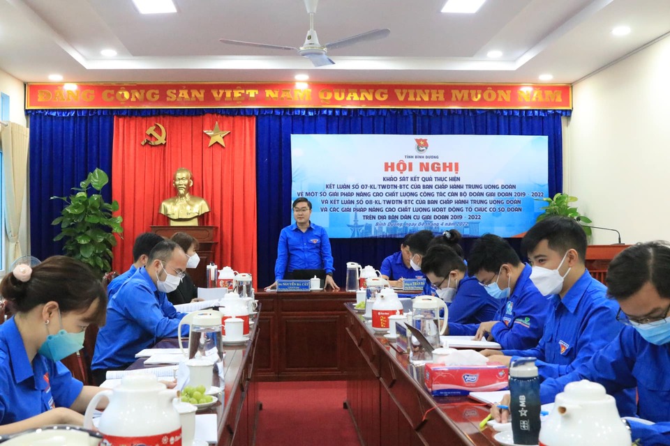 ĐTN: Sáng 04/4, Tỉnh đoàn Bình Dương tổ chức Hội nghị khảo sát thực hiện Kết luận số 07 của BCH T.Ư Đoàn về một số giải pháp nâng cao chất lượng công tác cán bộ Đoàn giai đoạn 2019 - 2022 và Kết luận số 08 của BCH T.Ư Đoàn về các giải pháp nâng cao chất lượng hoạt động tổ chức cơ sở đoàn trên địa bàn dân cư giai đoạn 2019 - 2022.