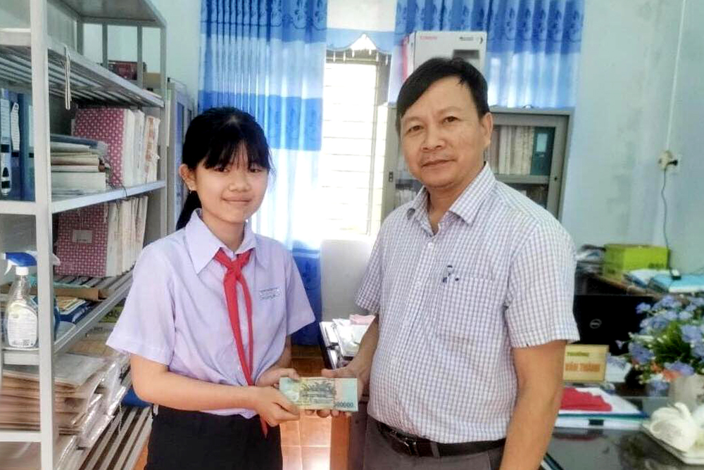 ĐTN: Thầy Nguyễn Văn Thành, Hiệu trưởng Trường THCS Thị trấn Di Lăng (huyện Sơn Hà, Quảng Ngãi) cho biết, nhà trường vừa tuyên dương, khen thưởng em Trần Lâm Gia Linh, học sinh lớp 7A vì có nghĩa cử cao đẹp khi nhặt của rơi và trả lại cho người bị mất.