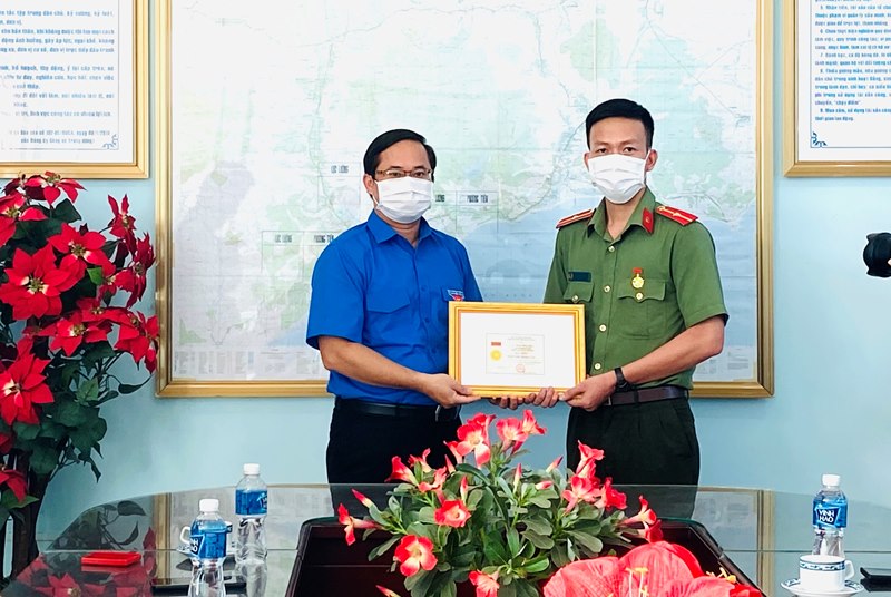 ĐTN: Chiều 18/5, thừa uỷ quyền của T.Ư Đoàn, Tỉnh đoàn Bình Thuận đã trao Huy hiệu "Tuổi trẻ dũng cảm" cho Thiếu uý Trần Minh Châu - đoàn viên Chi đoàn An ninh, công an Thị xã La Gi, tỉnh Bình Thuận đã có hành động dũng cảm cứu người bị đuối nước.