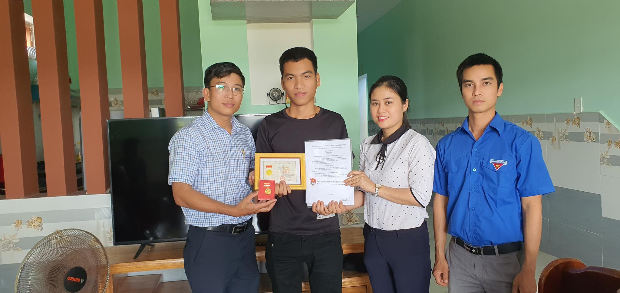 ĐTN: Thừa ủy quyền TW Đoàn, chiều 12/3, đồng chí Nguyễn Xuân Đức - Phó Bí thư thường trực Tỉnh đoàn, Chủ tịch Hội LHTN Việt Nam tỉnh Quảng Nam đã trao Huy hiệu "Tuổi trẻ dũng cảm" cho anh Trần Văn Tròn phường Điện Dương, thị xã Điện Bàn).