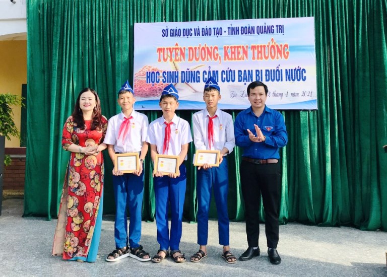 ĐTN: Sáng 12/4, Tỉnh Đoàn Quảng Trị đã tổ chức trao tặng Huy hiệu “Tuổi trẻ dũng cảm” của Trung ương Đoàn TNCS Hồ Chí Minh cho các em đội viên đã có hành động dũng cảm cứu người bị đuối nước.