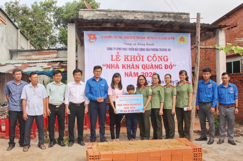 Web.ĐTN: Sáng 25/12, Đoàn Cơ sở Tỉnh đoàn - Hội Phụ nữ cơ sở Khối An ninh Công an Tây Ninh tổ chức lễ khởi công xây tặng nhà "Khăn Quàng đỏ" cho em Nguyễn Văn Thảo là học sinh lớp 6a3 Trường THCS Suối Ngô, huyện Tân Châu tỉnh Tây Ninh.