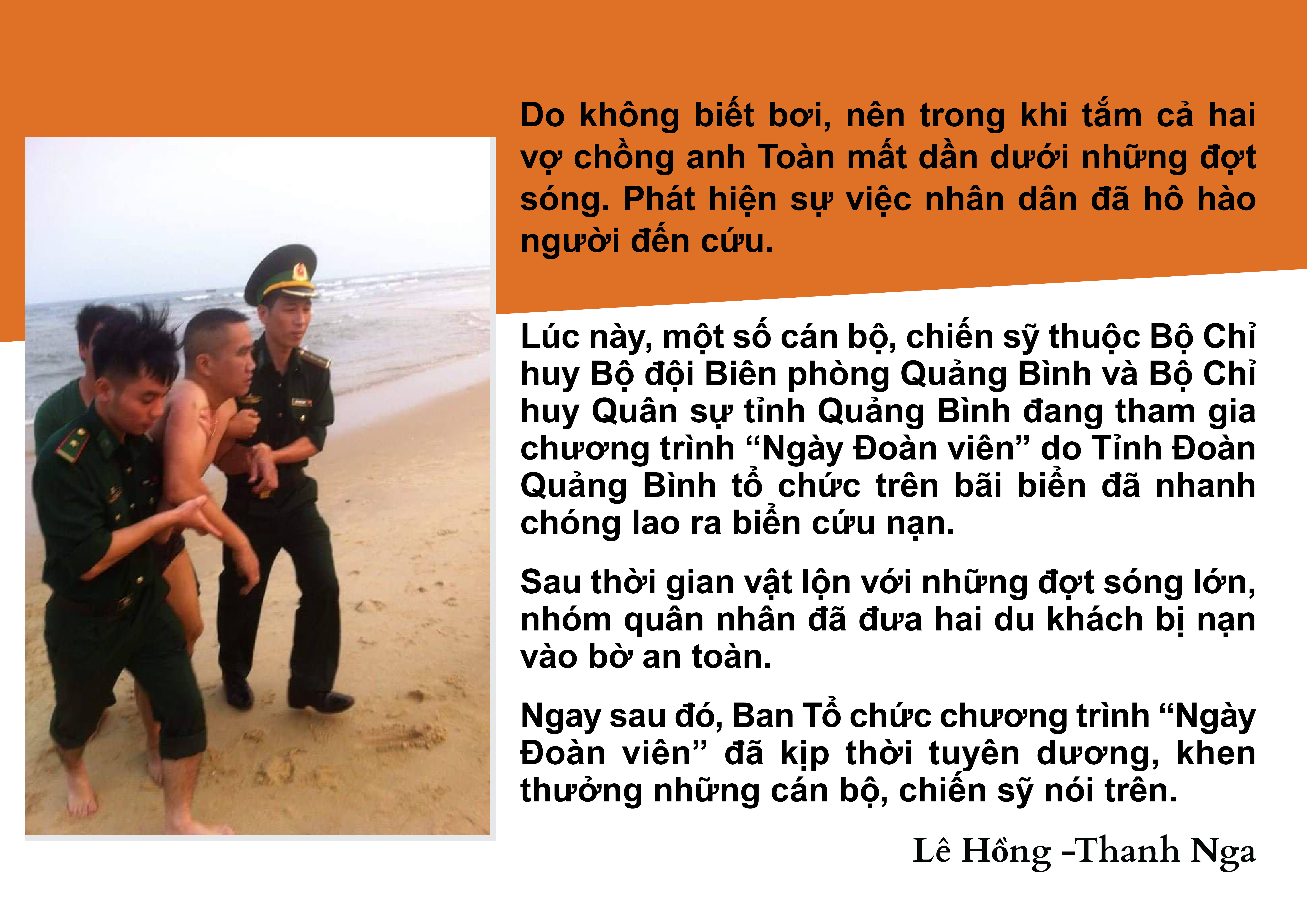 Web.ĐTN: Chiều tối ngày 20/3, khi anh Nguyễn Hữu Toàn (du khách người Hà Nội) và vợ của mình đang tắm tại bãi biển Nhật Lệ (TP Đồng Hới, tỉnh Quảng Bình) thì bất ngờ bị những con sóng to cuốn ra xa.
