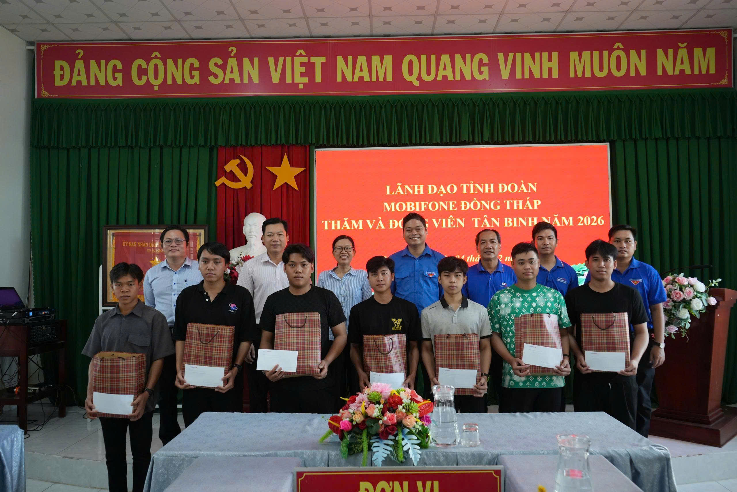 Ngày 04/3/2026, Ban Thường vụ Tỉnh đoàn Đồng Tháp phối hợp cùng Mobifone Đồng Tháp tổ chức các đoàn công tác đến thăm hỏi, động viên tân binh chuẩn bị lên đường nhập ngũ, đồng thời trao tặng quà cho gia đình chính sách và thiếu nhi có hoàn cảnh khó khăn có tân binh nhập ngũ trên địa bàn tỉnh.