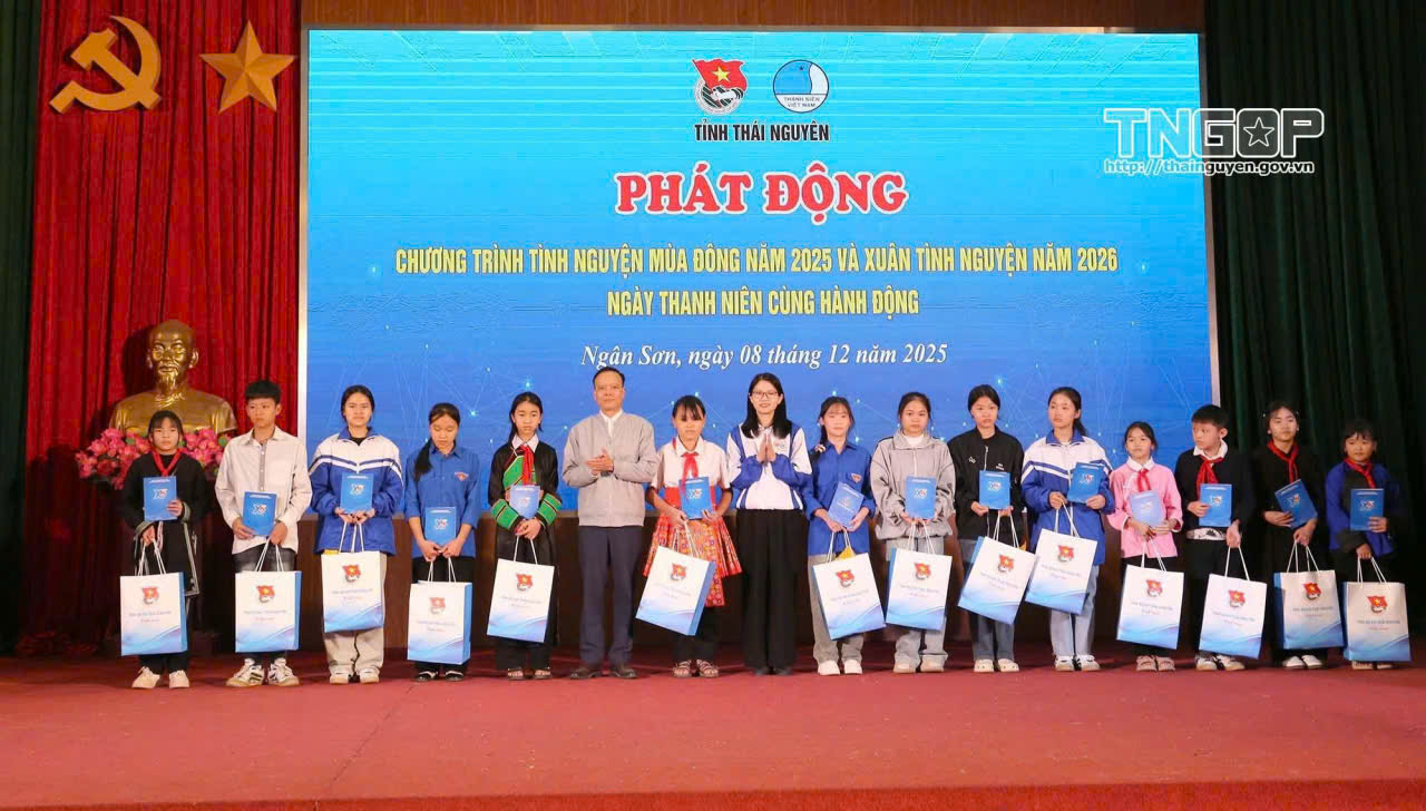 ĐTN: Ngày 08/12/2025, Tỉnh Đoàn, Hội LHTN Việt Nam tỉnh Thái Nguyên tổ chức Chương trình phát động “Chương trình Tình nguyện mùa đông năm 2025 và Xuân tình nguyện năm 2026; Ngày thanh niên cùng hành động” tại xã Ngân Sơn.